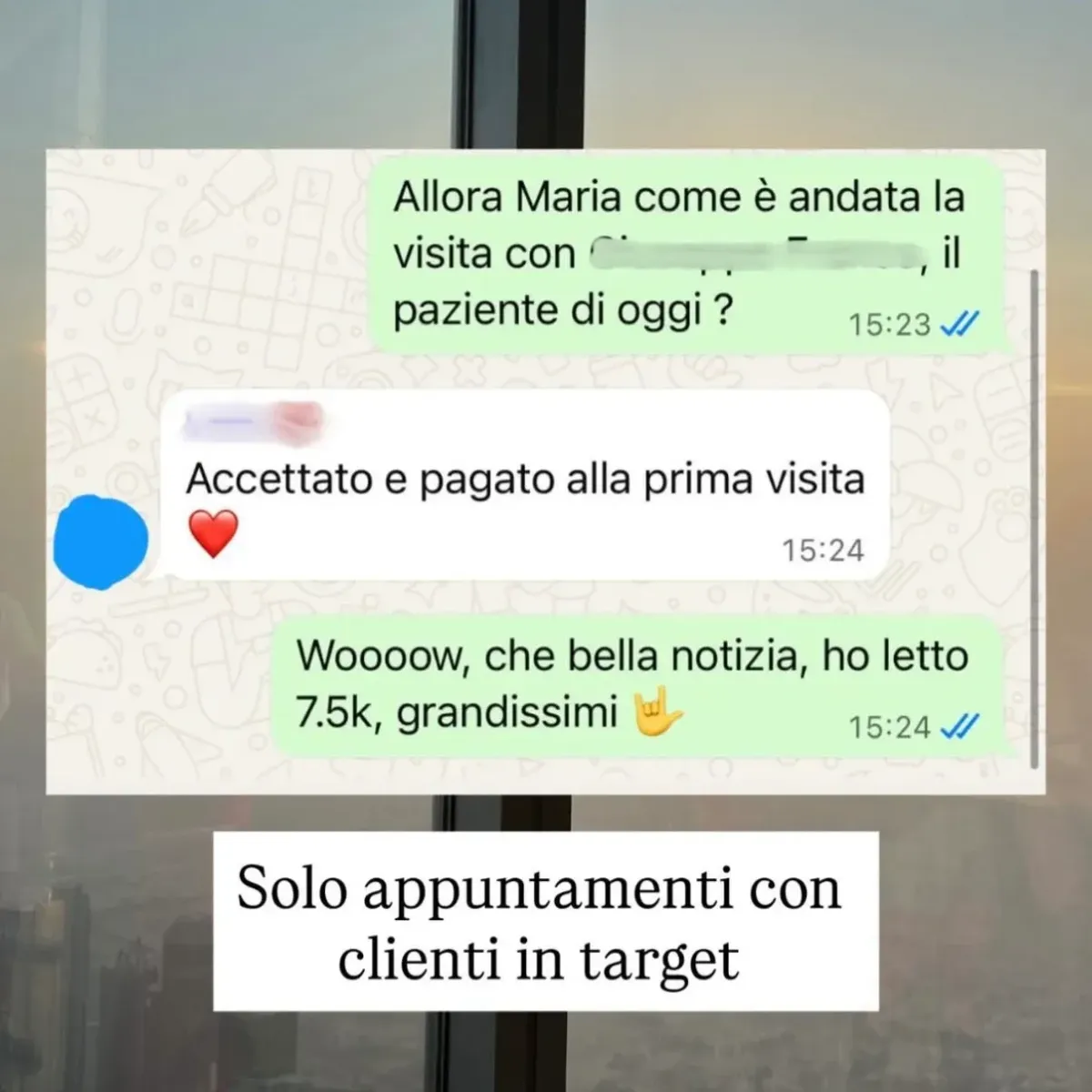 Ti portiamo SOLO clienti di SERIE A, cioè persone nella tua zona, che hanno disponibilità economica e che hanno un forte desiderio di risolvere il problema che il tuo lavoro promettere di risolvere. No curiosi, No perditempo